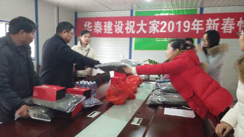 2019年1月19日,華泰建設(shè)工程有限公司積極組織人員對(duì)各項(xiàng)目部開展走訪慰問(wèn),并送去新年問(wèn)候。各后盾部門也積極發(fā)揮“娘家人”的作用,帶上慰問(wèn)品看望項(xiàng)目工作人員,鼓勵(lì)他們?cè)谛碌囊荒昀锊煌跣模频Z前行,再造輝煌。