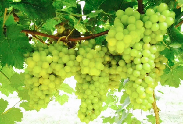 這個令人垂涎不止的葡萄有個很美的名字叫夏因馬斯卡特鮮葡萄,入口即可以感受到一股淡淡的玫瑰香味,穗重600克左右,大穗可達(dá)1500克左右,平均果粒重8-15克;果粒著生緊蜜,橢圓形,黃綠色,果面有光澤,果粉少,果肉鮮脆多汁,糖度最高達(dá)26度左右。