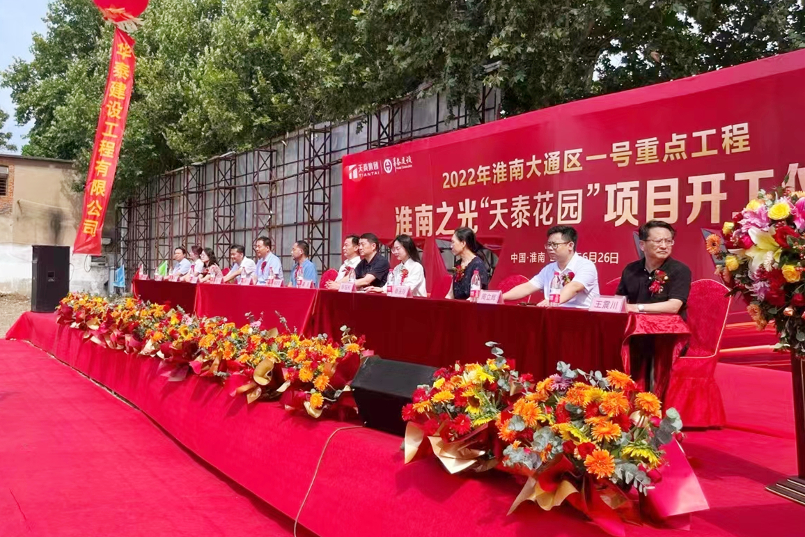 2022年6月26日上午,由華泰建設(shè)工程有限公司承建的2022年淮南大通區(qū)一號(hào)重點(diǎn)工程——淮南之光“天泰花園”項(xiàng)目開(kāi)工儀式盛大啟動(dòng)。
