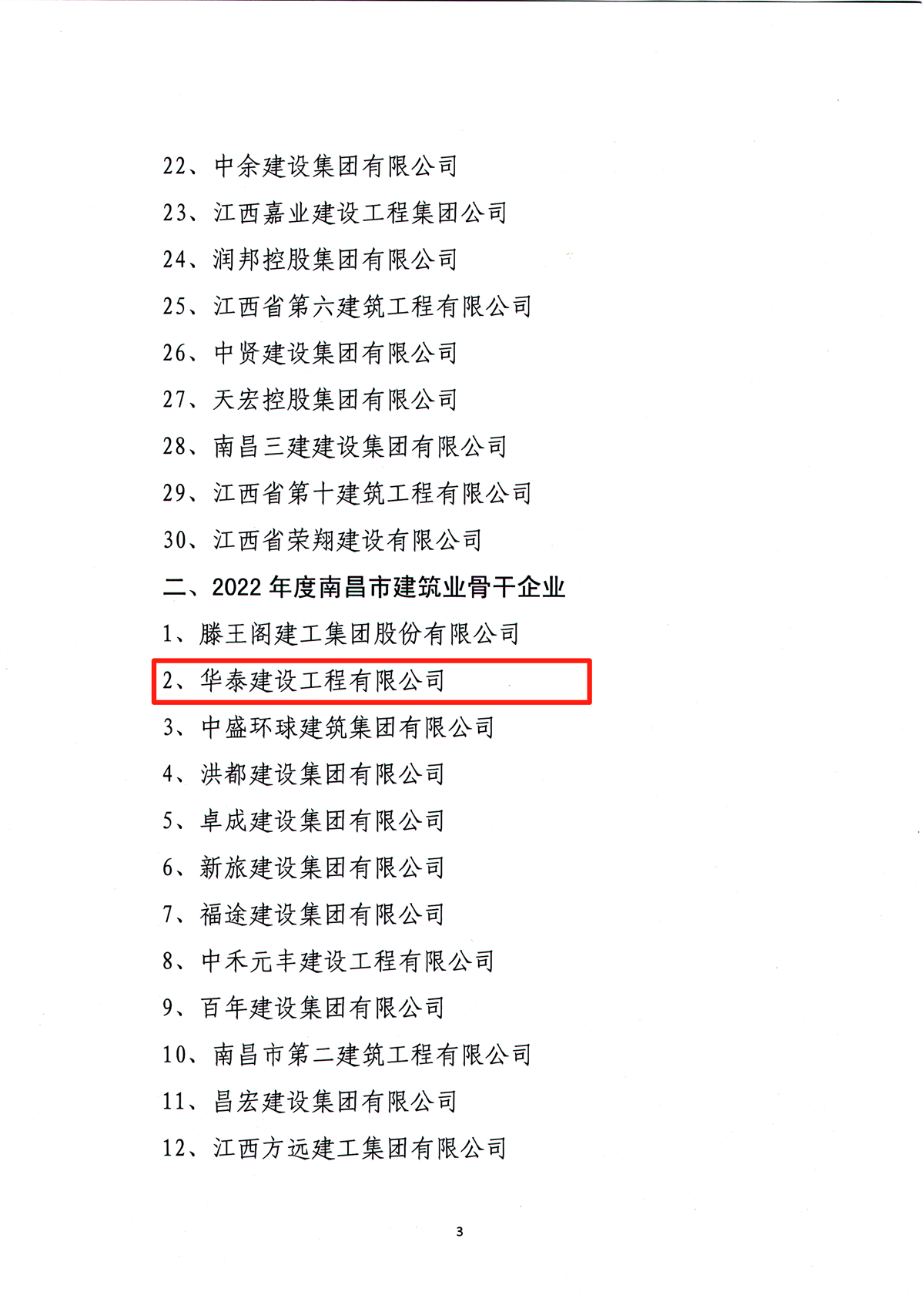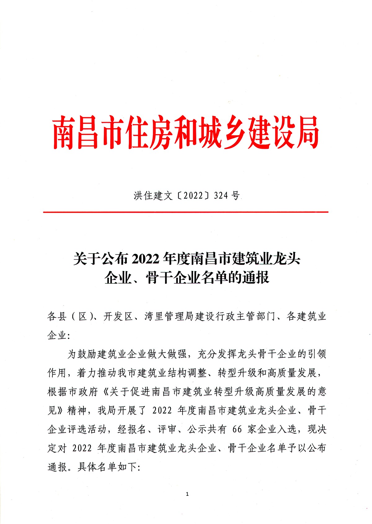 近日,我市住房和城鄉(xiāng)建設(shè)局組織開(kāi)展的2022年度南昌市建筑業(yè)龍頭企業(yè)、骨干企業(yè)的評(píng)選活動(dòng)落下帷幕。通過(guò)企業(yè)資質(zhì)、產(chǎn)值稅收、質(zhì)量安全、獎(jiǎng)勵(lì)表彰、科技創(chuàng)新、經(jīng)營(yíng)管理、社會(huì)責(zé)任等多方面評(píng)比,華泰建設(shè)工程有限公司憑借優(yōu)異的綜合實(shí)力獲評(píng)“2022年度南昌市建筑業(yè)骨干企業(yè)”榮譽(yù)稱號(hào)。