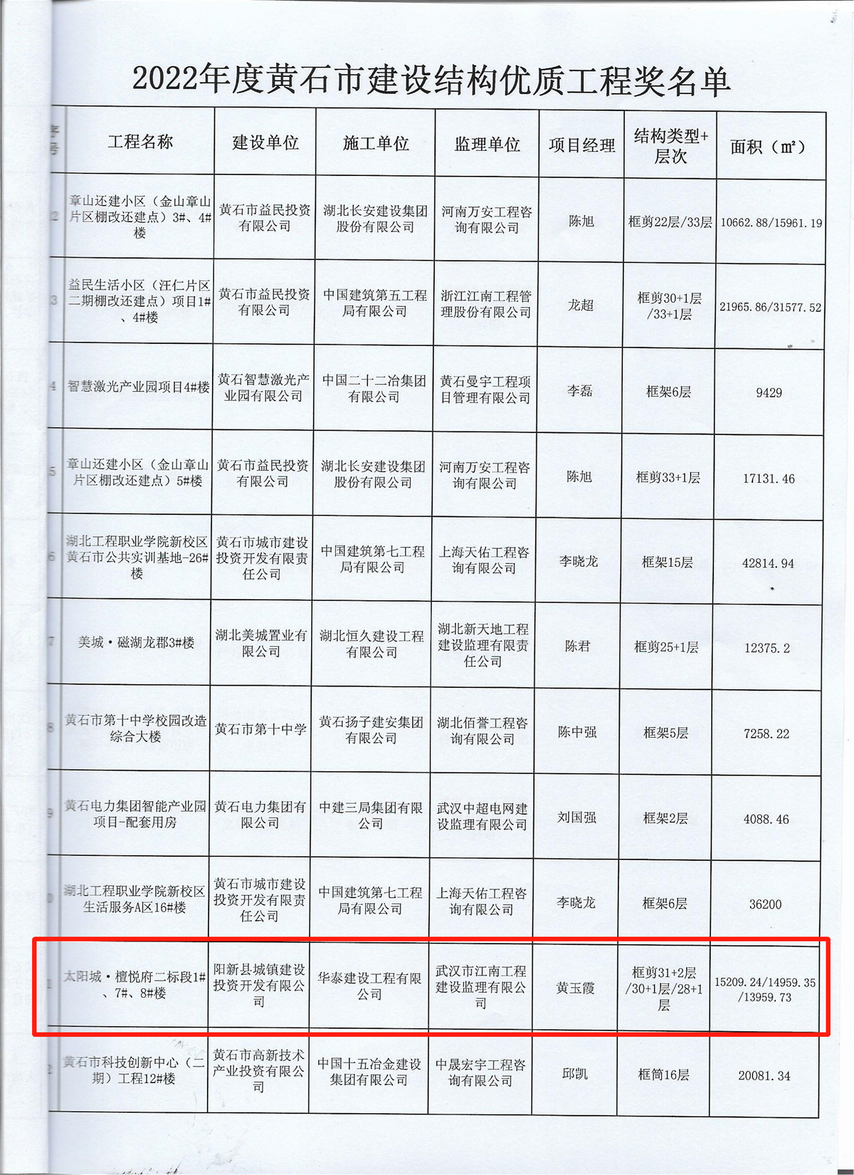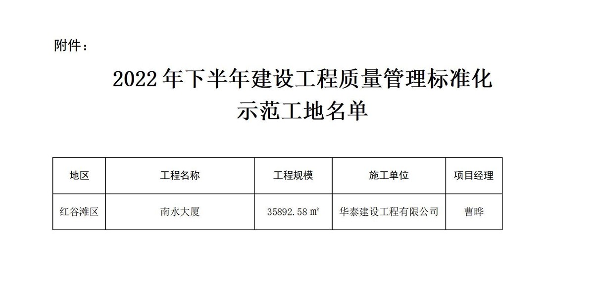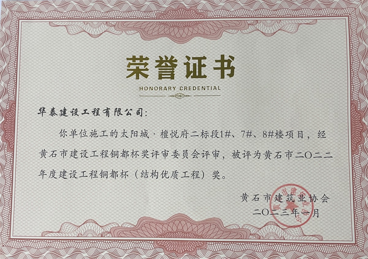 近日,在南昌市住房和城鄉(xiāng)建設(shè)局發(fā)布的《關(guān)于2022年下半年建設(shè)工程質(zhì)量管理標(biāo)準(zhǔn)化示范工地的通告》、黃石市建筑業(yè)協(xié)會(huì)發(fā)布的《關(guān)于授予2022年度黃石市建設(shè)結(jié)構(gòu)優(yōu)質(zhì)工程獎(jiǎng)項(xiàng)目的通知》中,經(jīng)各屬地工程質(zhì)量監(jiān)督部門推薦和專家評(píng)價(jià),由華泰建設(shè)工程有限公司承建的“南水大廈”項(xiàng)目與“太陽城·檀悅府二標(biāo)段1#、7#、8#樓”項(xiàng)目分別榮獲南昌市“2022年下半年建設(shè)工程質(zhì)量管理標(biāo)準(zhǔn)化示范工地”、“黃石市2022年度建設(shè)工程銅都杯(結(jié)構(gòu)優(yōu)質(zhì)工程)獎(jiǎng)”。建設(shè)工程質(zhì)量標(biāo)準(zhǔn)化示范工地評(píng)比是考核參建單位質(zhì)量管理水平的重要標(biāo)準(zhǔn)之一,同時(shí),建設(shè)工程銅都杯(結(jié)構(gòu)優(yōu)質(zhì)工程獎(jiǎng))代表了建筑工程結(jié)構(gòu)施工質(zhì)量的高水平,也是精品工程的重要標(biāo)志。獲此兩項(xiàng)殊榮,是對(duì)華泰建設(shè)項(xiàng)目施工水平及安全質(zhì)量管理的充分肯定,彰顯了華泰建設(shè)在工程項(xiàng)目管理、工程品質(zhì)等領(lǐng)域的卓越實(shí)力。