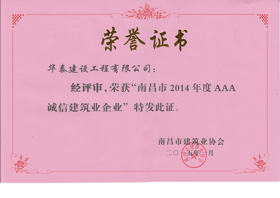 首頁(yè) > 關(guān)于華泰 > 企業(yè)榮譽(yù) > 2014年度AAA誠(chéng)信建筑業(yè)企業(yè)