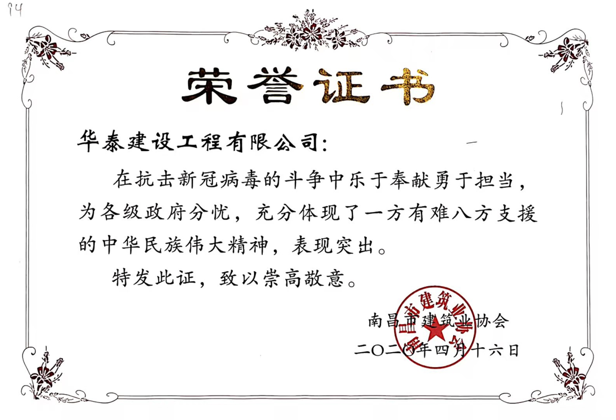 首頁 > 關(guān)于華泰 > 企業(yè)榮譽(yù) > 榮獲2020年抗擊疫情榮譽(yù)證書