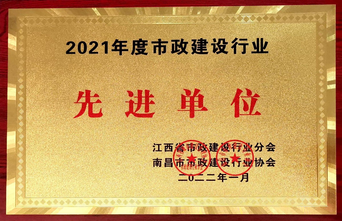 榮獲2021年度市政建設行業(yè)先進單位
